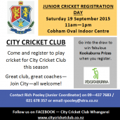 A huge thank you to all involved in the City Cricket Club Junior Registration day that was held on Saturday.  We had a spectacular turnout, filling the indoor centre with young cricketers – both boys & girls – and parents for two hours.  A proud moment to see all the registered cricketers in their City blue shirts ready to get into the swing of things for the season.  With around 70 juniors signed up on the day and registrations coming in online we are looking at a very, very busy season!